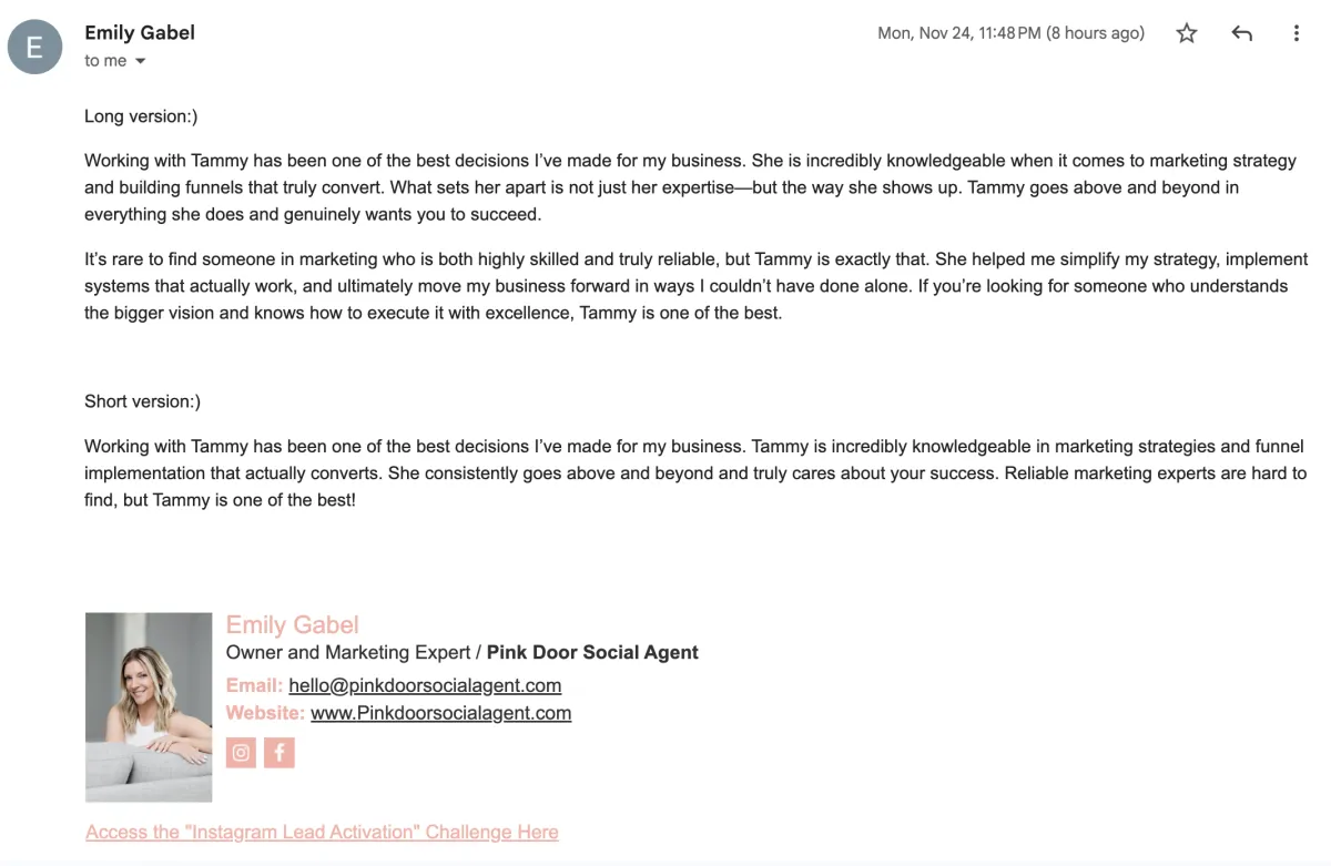 Headline, body copy, and call-to-action — all written during your session to speak directly to your dream client's exact pain points.